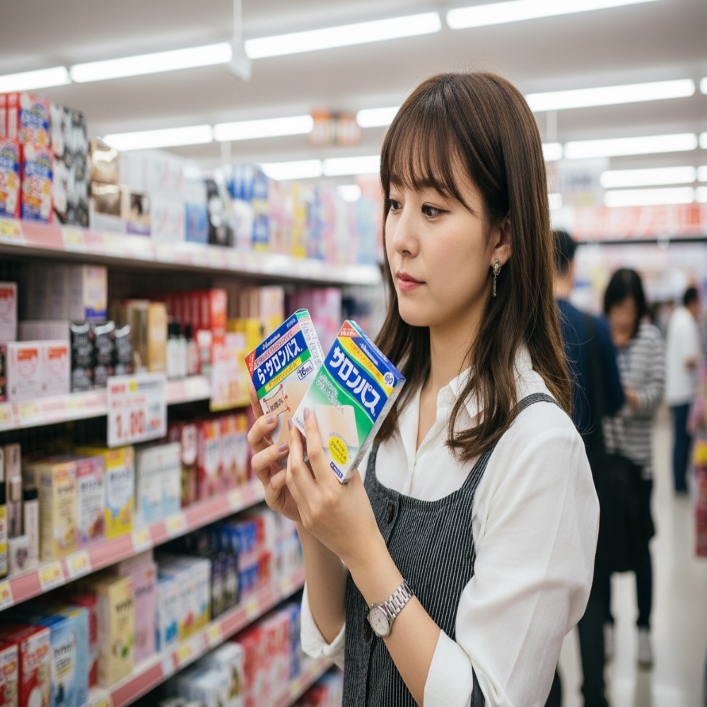 일본 드럭스토어 쇼핑 리스트에서 항상 상위권을 차지하는 '샤론파스(サロンパス)'는 80년 넘는 역사를 가진 일본의 국민 파스입니다. 특유의 시원한 쿨링감과 빠른 통증 완화 효과 덕분에 현지인은 물론 한국 여행객들에게도 필수 상비약으로 꼽히죠. 특히 크기가 작아 혼자서도 붙이기 쉽고 부착 후 티가 잘 나지 않는다는 점이 가장 큰 매력입니다.
